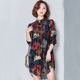 大码圆领印花T恤女2017夏装新款文艺风麻料小衫上衣秋季女装新品