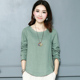 春季新品女装长袖T恤女宽松韩范圆领上衣2017春夏款纯色亚麻小衫