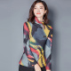 长袖打底衫女2017春秋新款抽象印花修身显瘦花色打底小衫女潮