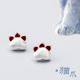 创意小猫咪S925纯银耳钉女防过敏简约可爱不对称镂空小动物萌礼物