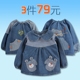 3件79傲贝美纯棉牛仔宝宝罩衣婴儿反穿衣饭衣饭兜儿童围裙画画衣