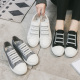懒人鞋女学生平底韩版百搭厚底一脚蹬春季新款条纹帆布鞋潮乐福鞋