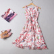 204408 韩范俏丽欧洲站夏圆领拉链无袖印花拼接真丝连衣裙