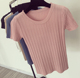 夏装新款韩版修身显瘦圆领黑色针织短袖女打底衫条纹t恤薄款上衣