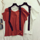 2017春季新款半开领交叉系带针织衫女套头紧身显瘦短袖t恤女上衣