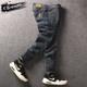 春季潮牌青少年学生男士胖子大码水洗牛仔裤宽松哈伦裤潮男潮裤子