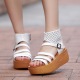 2017夏季新款厚底防水台松糕跟鞋子百搭女鞋马毛豹纹坡跟凉鞋女