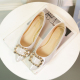 糖果色OL单鞋2017夏季新款尖头漆皮镂空皮带扣粗跟中跟鞋平底凉鞋