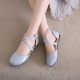 2017春夏新款尖头鞋绒面气质交叉绑带细跟高跟鞋一字扣单鞋女米色
