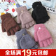 韩版冬季可爱男女士毛绒翻盖两用半指手套 加厚保暖露指手套厂家