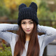 甜美可爱熊耳朵加厚毛线帽韩版秋冬天保暖卷边针织帽护耳帽子女潮