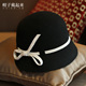 芬格秋冬季大蝴蝶结纯羊毛呢帽子女士圆顶复古英伦小礼帽卷边毡帽