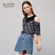 阔色2017夏季新款韩版女装假两件衬衫格子宽松露肩短袖衬衣预售