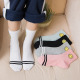 伊丝澜莎秋冬新款 女士小清新英文字全棉中筒袜子 三条杠女袜棉袜