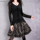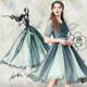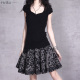 买2送1阿卡安妮夏装收腰大摆蕾丝拼接中袖雪纺连衣裙2色LA10730X