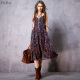阿卡夏装女新品修身显瘦印花宽松吊带碎花连衣裙长款LA11865C