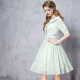 买2送1阿卡伊丽莎白夏女优雅蕾丝绣花短袖雪纺连衣裙2色LA10340X
