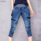 Artka阿卡夏清新蓝白刺绣显瘦哈伦小脚裤牛仔裤七分裤KN14535X