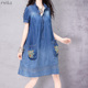 Artka阿卡薇安夏女十字绣花宽松A型短袖棉质牛仔连衣裙SN14034X