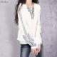 artka阿卡2017夏季新刺绣纯棉复古长袖衬衫女白色上衣SA11072C