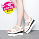 Vivala夏 女凉鞋 鱼嘴高跟鞋 防水台后包跟松糕编织底 羊皮