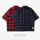 OVERSIZE高街宽松落肩格子侧开叉打底衬衫潮男复古美式加大衬衣