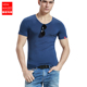 VeniMasee男士短袖T恤 莫代尔纯色紧身打底衫 V领休闲潮流半袖 男
