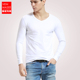 男士内衣上衣单件纯棉秋衣紧身长袖v领莫代尔打底衫薄款保暖内衣