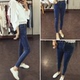 春夏季新款韩版学生九分高腰牛仔裤女磨破洞弹力显瘦小脚铅笔裤潮
