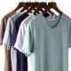 柔软竹节棉短袖T恤男士薄款日系做旧毛边圆领修身纯棉男t恤衫M