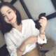 南瓜谷职业气场骨感天丝长袖衬衣宽松通勤v领白衬衫女春装 C192