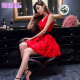 韩语琳空间韩版女装时尚性感透视挂脖露肩公主雪纺收腰连衣裙 夏