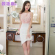 韩语琳空间夏装新款韩版性感露肩钉钻无袖挂脖蕾丝连衣裙 短裙
