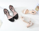 CHNEE 760 珠光牛皮一字带全皮粗跟高跟女凉鞋