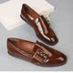 流苏方头粗跟乐福鞋中跟黑色漆皮休闲单鞋外贸大码女鞋套脚鞋