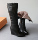 秋冬新款 舒适保暖(全羊毛)真皮坡跟 厚底女长靴35-40