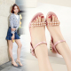 波西米亚凉鞋女夏季2017新款学生粗跟高跟凉鞋水钻串珠一字带露趾