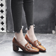 小红人粗跟单鞋女真皮春季新款复古英伦风女鞋系带中跟休闲皮鞋女