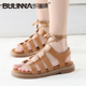步琳娜韩版夏季新款软底马丁平底凉鞋女搭扣镂空松糕厚底露趾女鞋