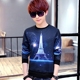 青年秋季个性长袖T恤男士V领韩版印花卫衣潮流修身上衣圆领打底衫