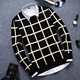 2015新品男士长袖针织衫T恤格子圆领秋季针织个性修身打底衫保暖