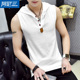 夏季青少年连帽背心男士砍袖修身型紧身运动无袖t恤男短袖韩版潮
