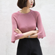 2016新款韩版袖子开叉打底衫修身七分袖上衣百搭短款针织衫女套头