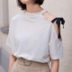 韩版漏肩白色t恤女小衫2017新款潮夏季百搭显瘦圆领中袖休闲上衣