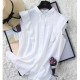 韩国夏季新款韩版翻领白色无袖衬衣修身衬衫棉麻休闲百搭女装上衣