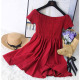 名媛夏季连衣裙女压褶修身显瘦一字领短袖露肩高腰公主裙中长裙女