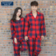 香蕉女孩全棉睡衣男女士秋季韩版情侣睡衣套装长袖格子纯棉家居服