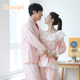 韩版新品款梭织全纯棉情侣睡衣睡裙男长袖套装春秋季同款女士中袖