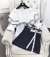 T53#欧洲站2017新荷叶边一字领娃娃衫字母腰带开叉半身裙两件套