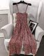 N117夏新款复古小碎花吊带百褶连体裤九分雪纺裤子高腰背带阔腿裤